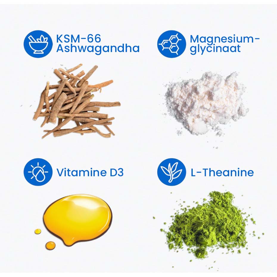 Sommige mensen voelen al in de eerste dagen meer rust dankzij L-theanine. De volledige voordelen van ashwagandha en magnesium worden echter meestal merkbaar bij consequent gebruik gedurende 2 tot 4 weken.